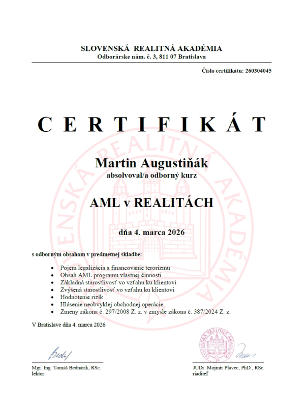 Majiteľ realitnej kacncelárie s 15 ročnou praxou a titulom RSc.