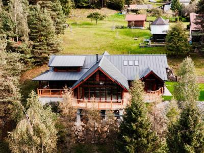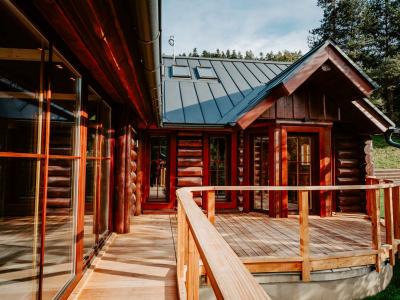 EXKLUZÍVNE ponúkame na predaj luxusný zrubový dom s terasou, Hnilčík – Bindt, okres Spišská Nová Ves. Dvojpodlažná nehnuteľnosť je situovaná na rovinatom a slnečnom pozemku s prístupom po verejnej komunikácii. Nehnuteľnosť je vhodná na celoročné rekreačné ubytovanie pre rodiny s deťmi a pozostáva z: