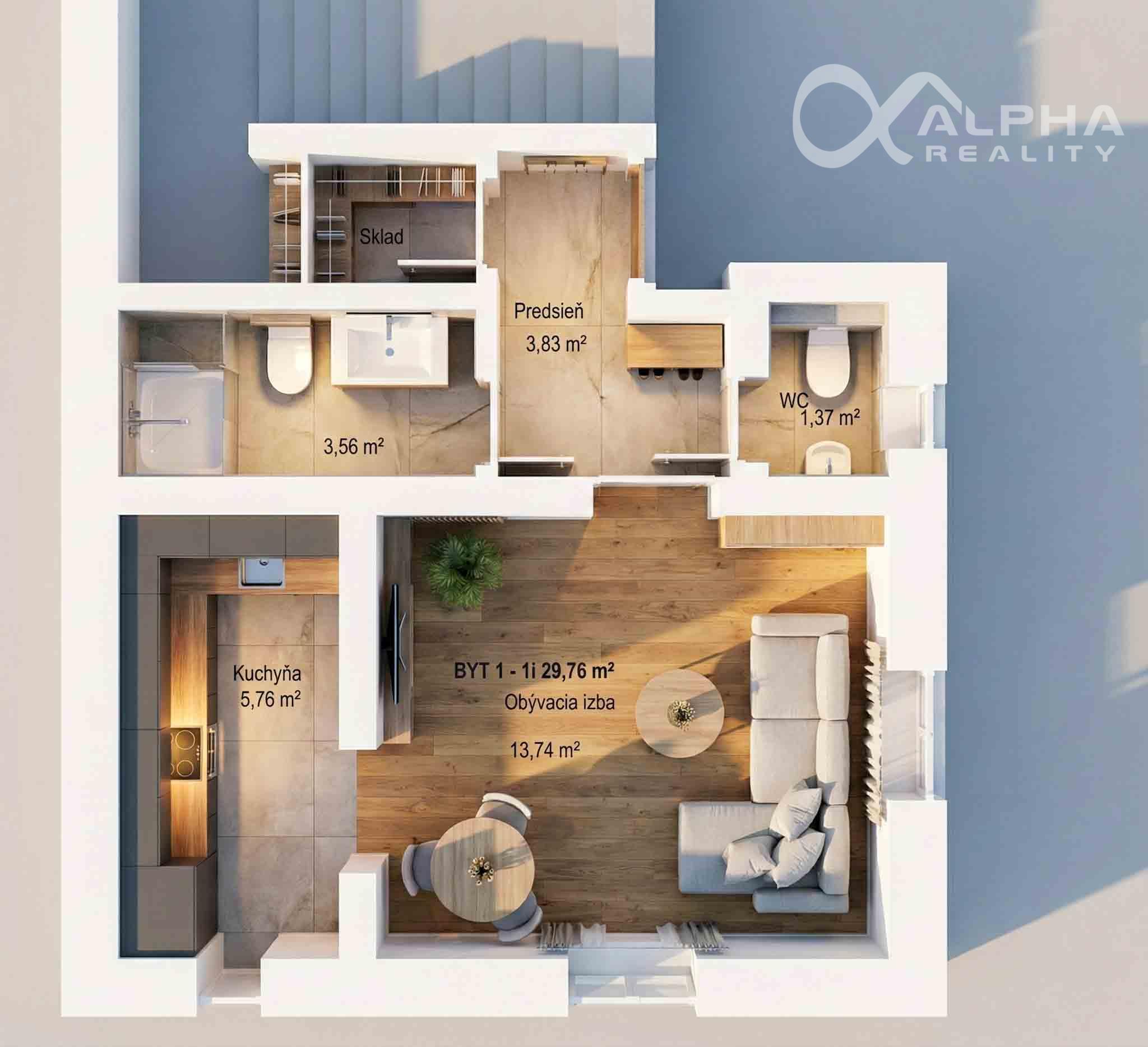 -celková úžitková plocha: 33,22m2 (vrátane pivnice 3,73m2),