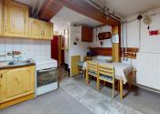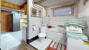 -suterén: zádverie so šatníkom, 1 obytná miestnosť, kotolňa, kuchyňa, kúpeľňa s WC, chodba so schodiskom na poschodie,