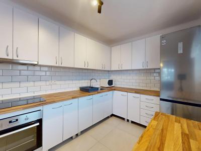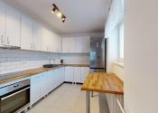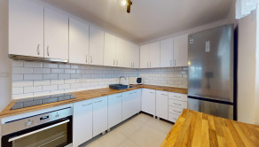 -vybavenie: kuchynská linka so spotrebičmi (teplovzdušná rúra, varná doska, odsávač pár, mikrovlnná rúra, chladnička s mrazničkou),