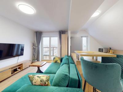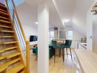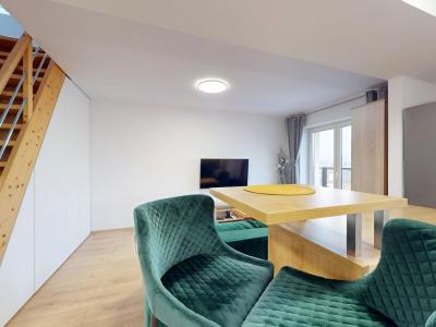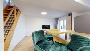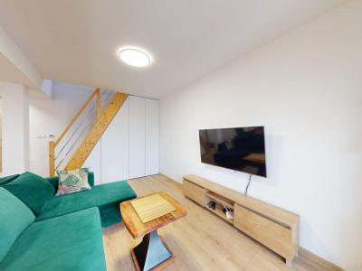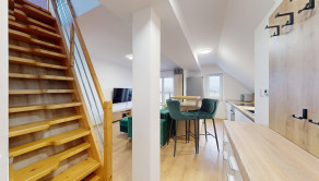 Ponúkame na prenájom 2 izbový mezonet s balkónom, ulica M. Gorkého, Spišská Nová Ves. Nehnuteľnosť sa nachádza v kompletne zrekonštruovanom bytovom dome a pozostáva z predsiene, kuchyne spojenej s obývacou miestnosťou a vstupom na balkón, kúpeľne s WC, na poschodí jednej priestrannej miestnosti rozdelenej na spálňu a pracovňu,