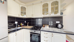 -kompletná rekonštrukcia: elektroinštalácia, vodoinštalácia, kuchynská linka so spotrebičmi, sadrokartónové stropy, omietky, interiérové dvere s obložkami, bezpečnostné dvere,