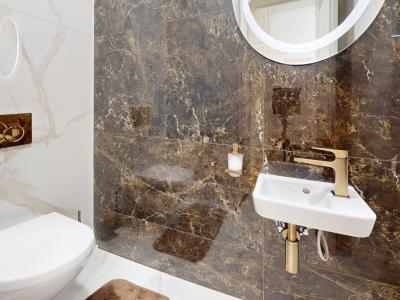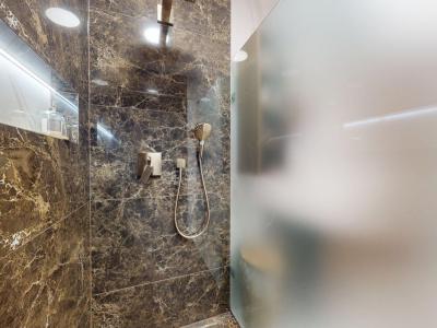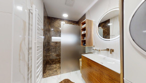 -bytové jadro: murované, nová sanita, batérie Hansgrohe, obklady a dlažba - mramor,